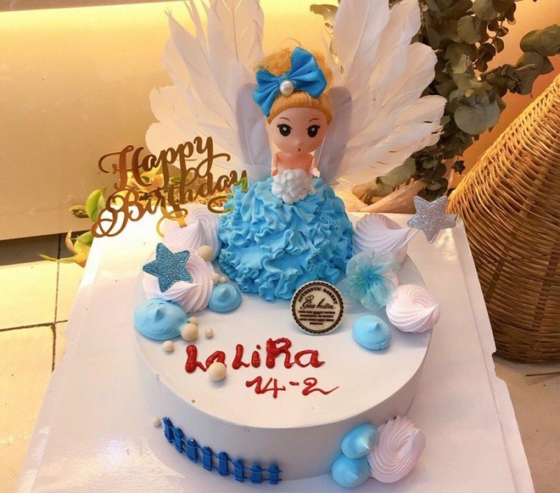 Nếu bé nhà bạn yêu thích màu xanh dương, hãy lựa chọn mẫu bánh kem búp bê này. Chắc chắn bé sẽ rất thích với hình ảnh cô búp bê có thêm đôi cánh cực kỳ dễ thương này.