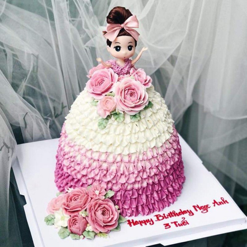 Bánh kem búp bê hoa hồng